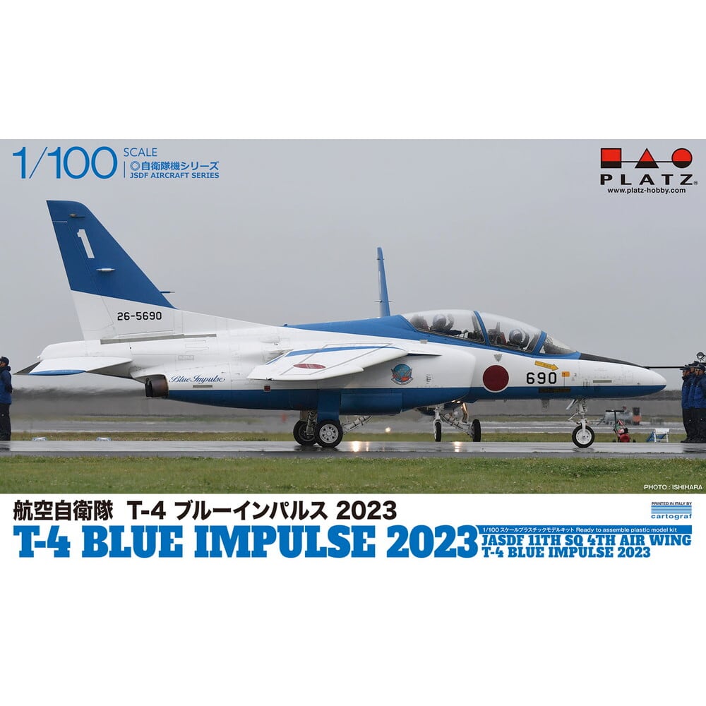 コロナ禍明けの2023年シーズンに展示飛行が人気を集めている航空自衛隊のアクロバット飛行チーム、ブルーインパルス。モデルは1/100スケールで2023年シーズンのブルーインパルスのT-4を再現した組み立てキットです。
