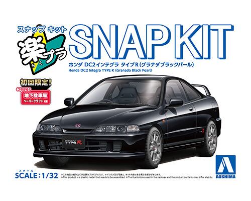 ホンダ インテグラにVTECを搭載したホットモデル「インテグラ タイプR」クーペモデルDC2を1998年の後期型、通称98Specでキット化しました。パーツ数を抑え、塗装不要・接着剤不要。お子様から大人まで楽しめるプラモデルです。