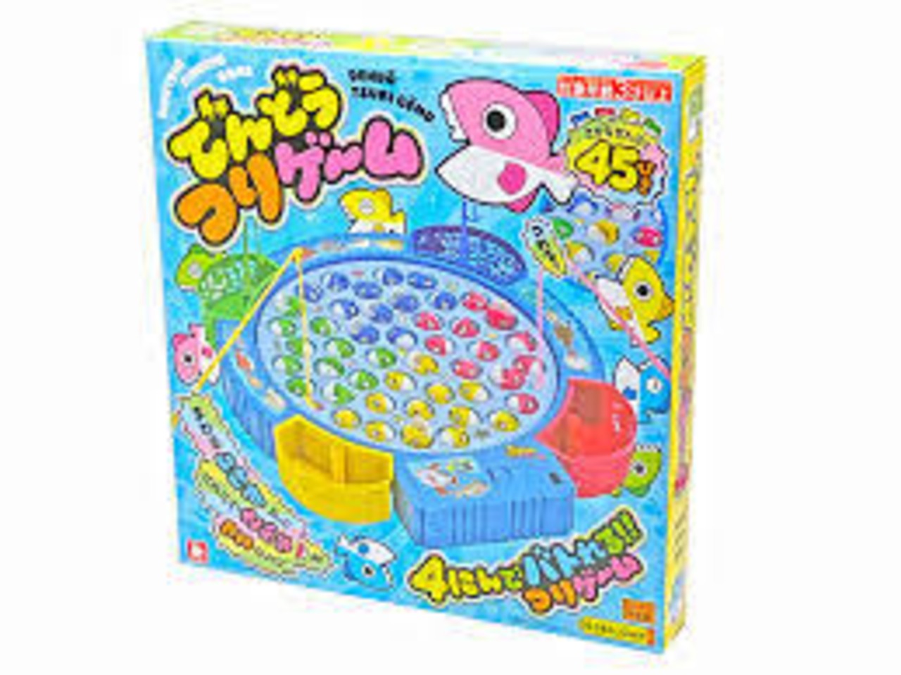 パクパクしながら回転するお魚さんを釣り上げよう!複数人で対戦ができる「でんどうつりゲーム」が登場~♪スイッチONでいけすがクルクル回ります。お魚の口に上手に釣り針をひっかけて吊り上げよう!お魚は総勢45匹!4本の釣り竿がついていますので、誰が一番多く釣りあげられるか競争してあそぶこともできちゃいます。