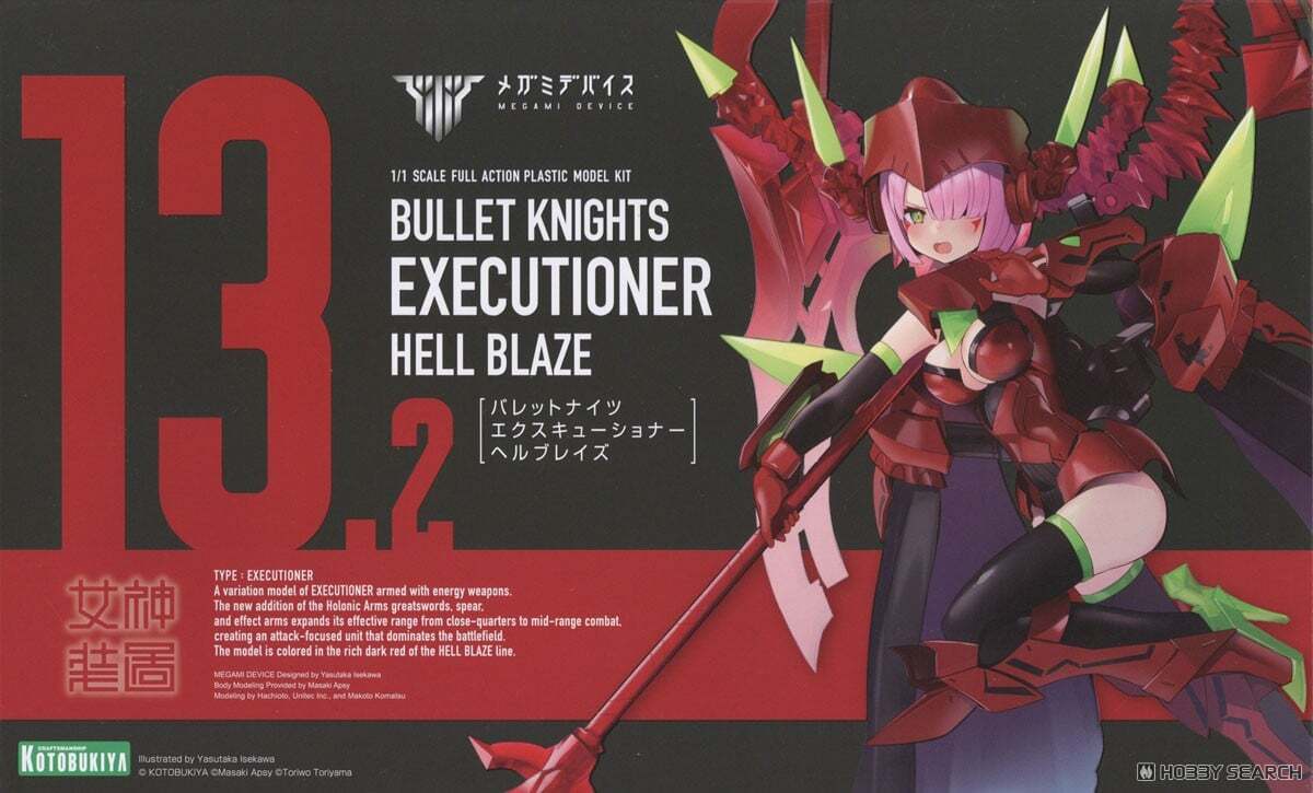 「BULLET KNIGHTS エクスキューショナー」をベースにM.S.G「ホロニックアームズ」の新色の大剣2本とスピアを組み合わせる事で更にバリエーション豊かなカスタムが体験できるセットです。